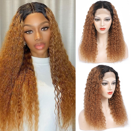 Ronashow Ombre Dark Roots 1B/30 Deep Curly 13*4 Lace Front Wig