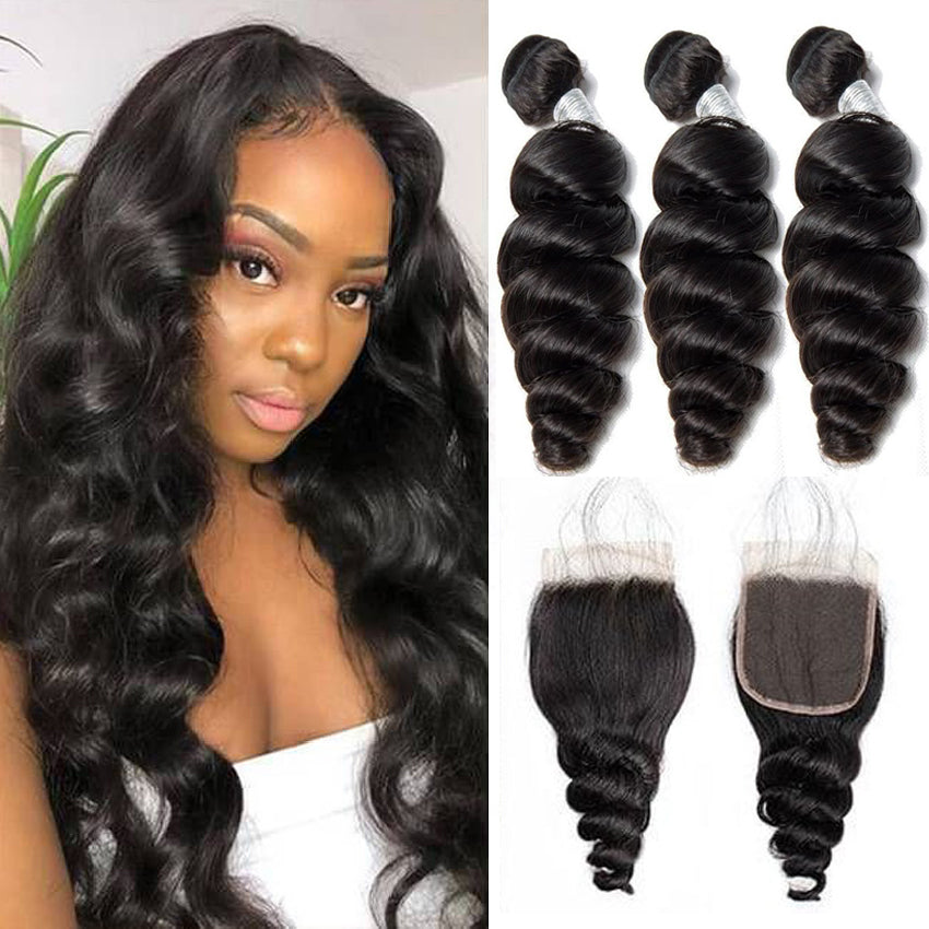 Loose Wave Remy Human Hair 3 Bundles With 4*4 Lace Closure